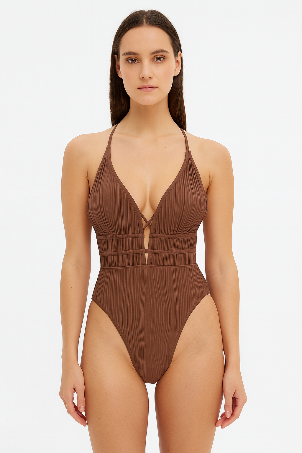 Une coupe fluide et une matière enveloppante, pour un maillot qui conjugue esthétique et performance au bord de l’eau.