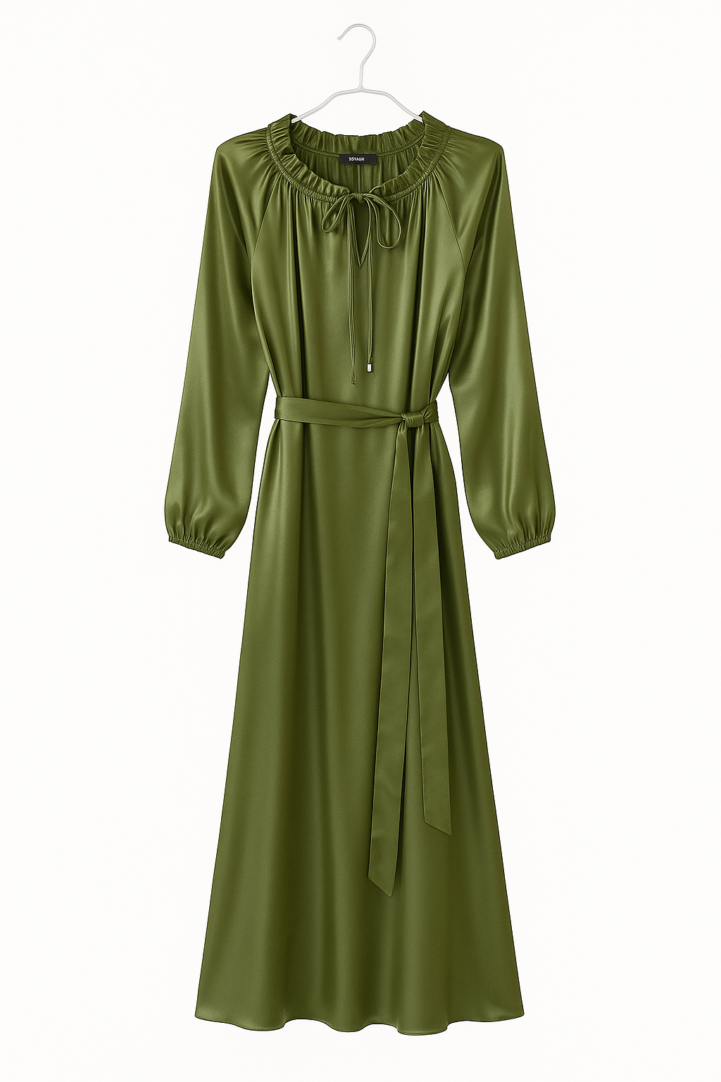Laissez-vous séduire par la robe Noble Kaki, une pièce fluide et légère pensée pour sublimer toutes les silhouettes. Avec sa coupe ample et sa ceinture intégrée, elle s’adapte avec élégance à toutes les morphologies.