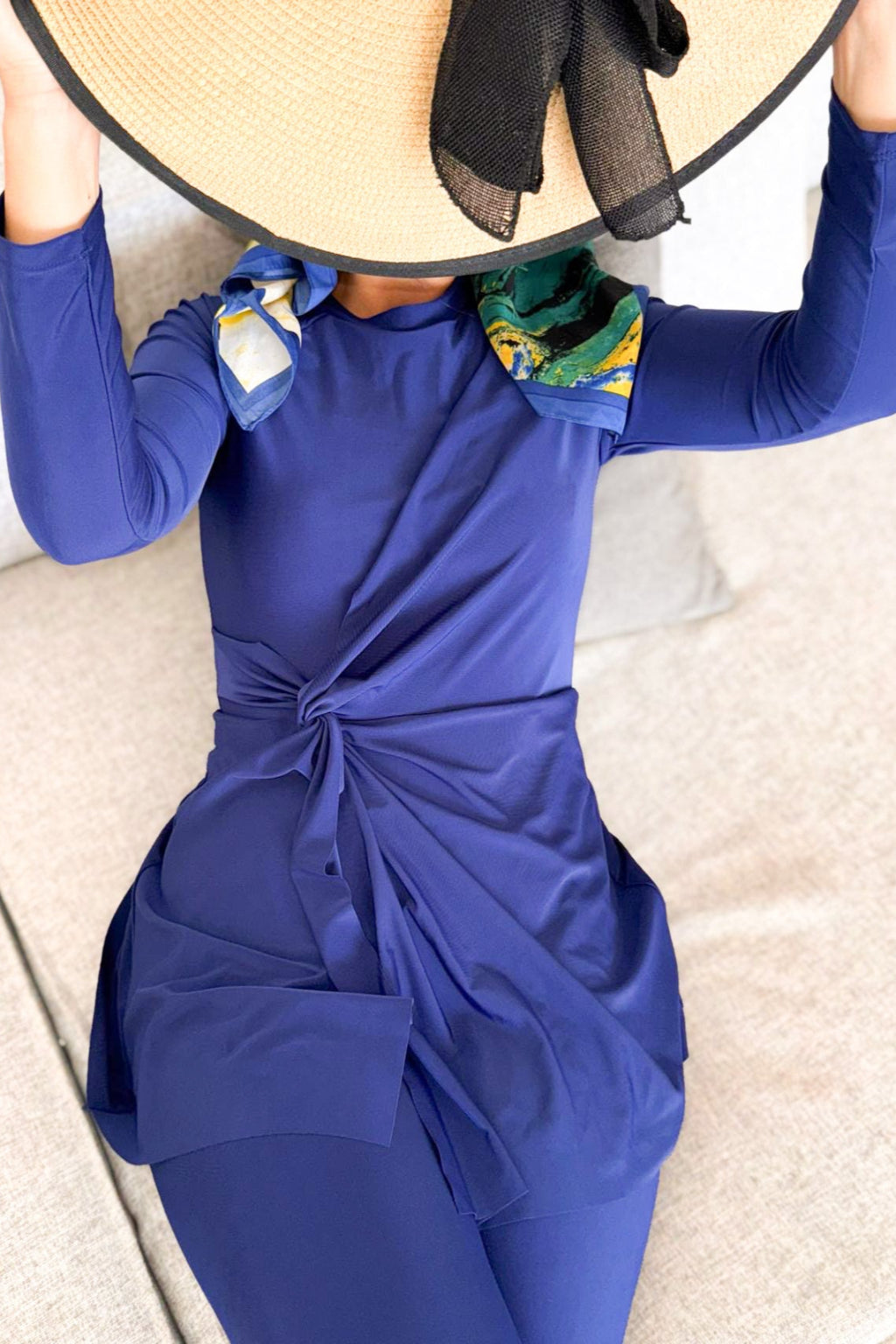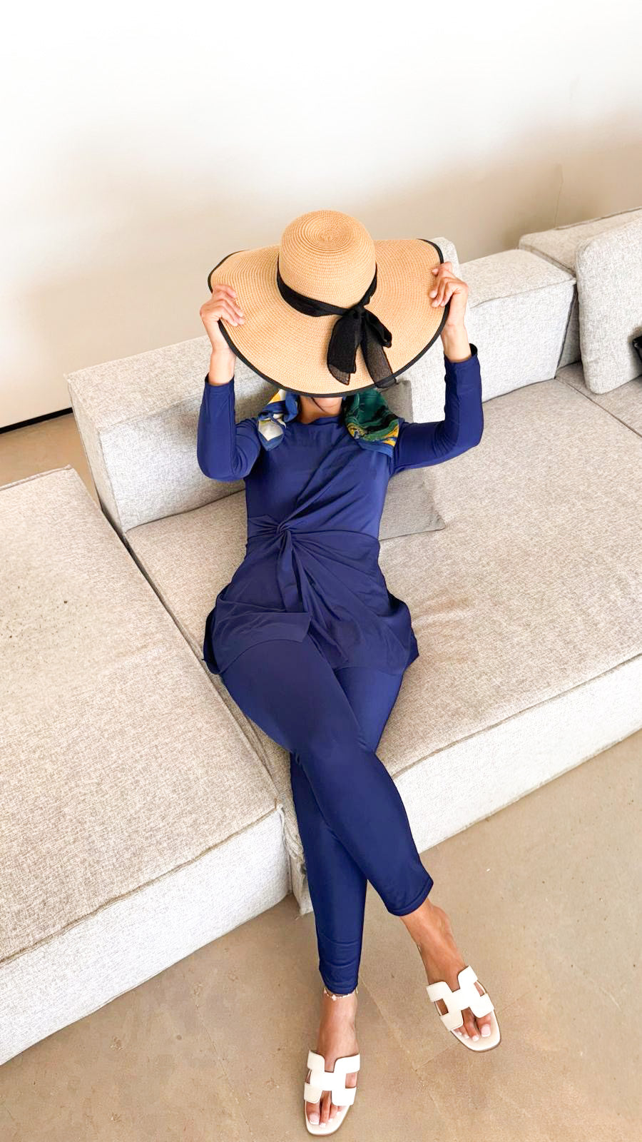 Un burkini épuré, sans accessoires, pour celles qui aiment aller à l’essentiel. Son bleu saphir profond apporte une touche de fraîcheur, tandis que sa coupe sobre garantit une silhouette élégante et confortable.